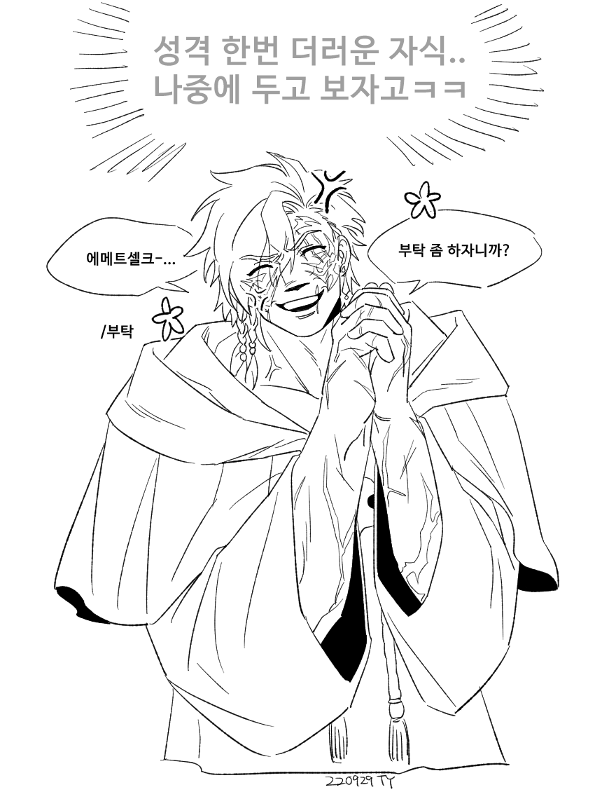가내수공업/낙서 220608~240519 by 따이얏 2024. 5. 26. 2022 (효월 복귀) 가내영감이랑 봇계로 핑퐁하다가 로그 그려왔길래 ^^; 2023 이전다음 0123 ㅠㅠ지인댁 아젬원 자캐 빌려서 아젬원즈로 모죠 패러디 이전다음 01 올림피안 기원 짤 못생기게 어케 잘 그리냐 예전에 그렸던 그림 리메이크 2024 발더게 (디앤디) AU 예전에 그렸던 그림 리메이크 222 공유하기 게시글 관리 별바다 여행기 '가내수공업 > 낙서' 카테고리의 다른 글 240517~240912 (0) 2024.09.20 201912~210804 (0) 2024.05.26 관련글 240517~240912 201912~210804