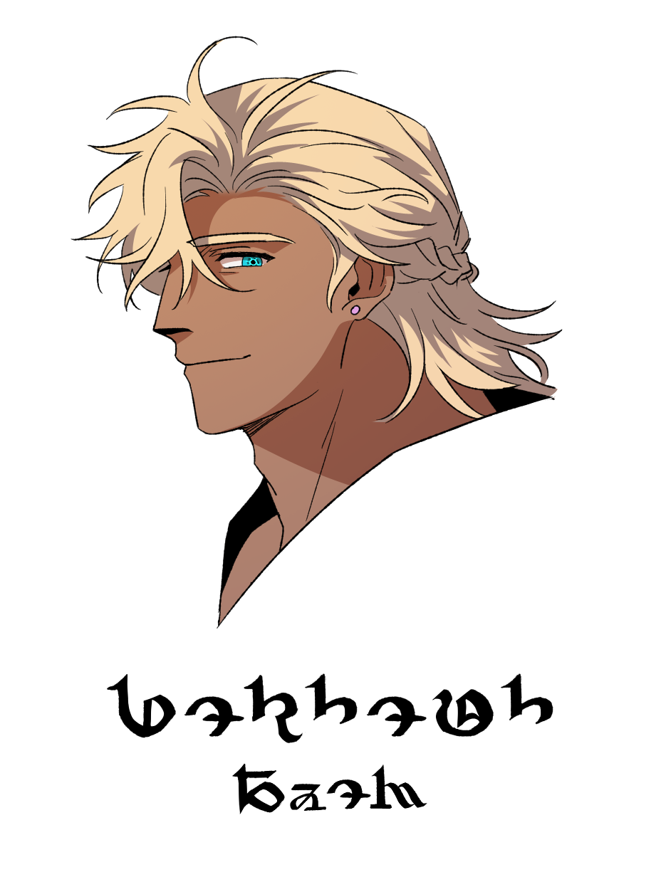 잘 구워진 빵같은 피부색, 밀빛 머리카락과 한 층 더 선명해진 에메랄드빛 눈동자를 가지고 있다. 홍채에선 고대인 특유의 안광이 흘러나오듯 빛나고 있으며, 특히 그의 눈동자의 색은 자신이 지닌 에테르의 빛과 매우 흡사하다.