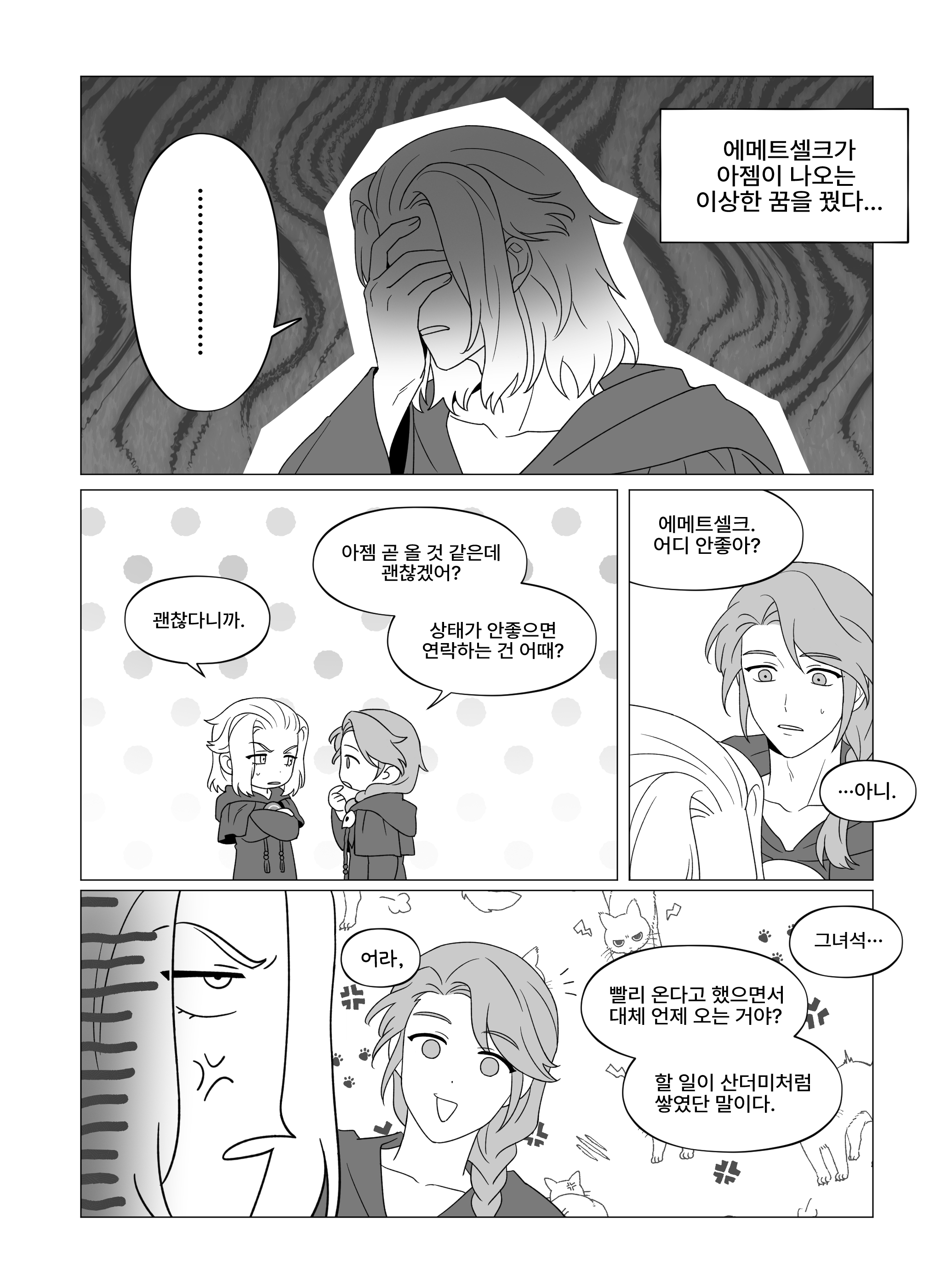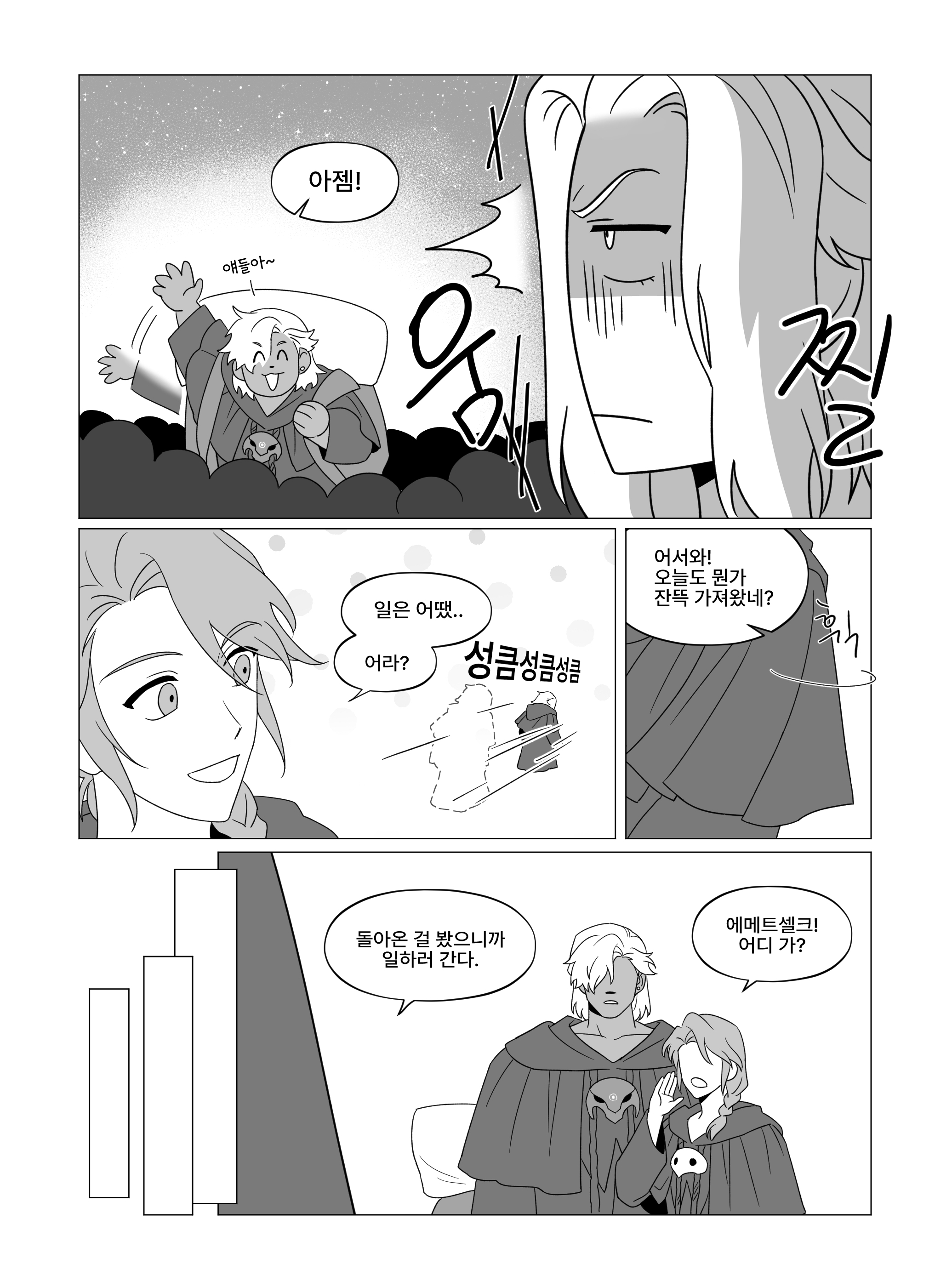 행사가 3~4일 밖에 안돼서.. 2일 차에 급하게 시작한 원고라 (급하고) 짤막하게 작업했었다네.. <:3C